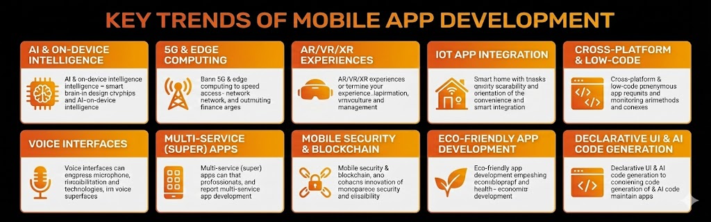 The development of mobile apps is rapidly growing, and emergence of new technologies and demands of users influence the development of apps and their utilization. Keeping up with these trends will assist businesses to develop smarter, fast and interesting apps.